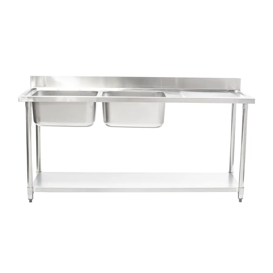 All stainless steel construction - including full-length stainless steel undershelf, Work surface at 900mm with 100mm boxed upstand to rear, Bowl size - 500 x 400 x 250mm each, Top- 201 Grade st/steel. Frame- 201 Grade tubular st/steel. Undershelf- 201 Grade st/steel., Supplied with standpipes and waste fittings, Note - We recommend using an ACA648 sink waste coupling - one per sink bowl - to aid installation, Note - Taps NOT included. 1/2-inch lever arm mixer tap available separately - order code OEA319, Supplied flat-packed - self assembly required, Range: Sinks, Type: Double Bowl Right Hand Drainer, Material: Stainless Steel, Product Type: Supplied flat-packed - 41.8kg, Plumbing Required: Yes