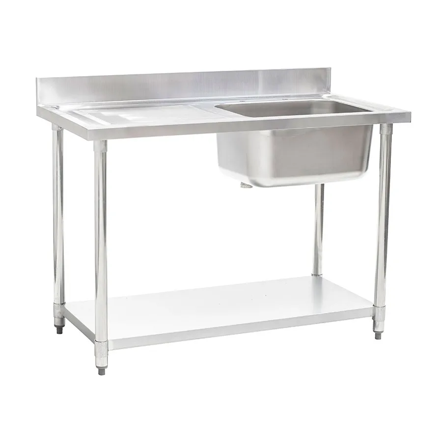 All stainless steel construction - including full-length stainless steel undershelf, Work surface at 900mm with 100mm boxed upstand to rear, Bowl size - 500 x 400 x 250mm, Top- 201 Grade st/steel. Frame- 201 Grade tubular st/steel. Undershelf- 201 Grade st/steel., Supplied with standpipe and waste fittings, Note - We recommend using an ACA648 sink waste coupling - one per sink bowl - to aid installation, Note - Taps NOT included. 1/2-inch lever arm mixer tap available separately - order code OEA316, Supplied flat-packed - self assembly required, Range: Sinks, Type: Single Bowl Left Hand Drainer, Material: Stainless Steel, Product Type: Supplied flat-packed - 26.5kg, Plumbing Required: Yes