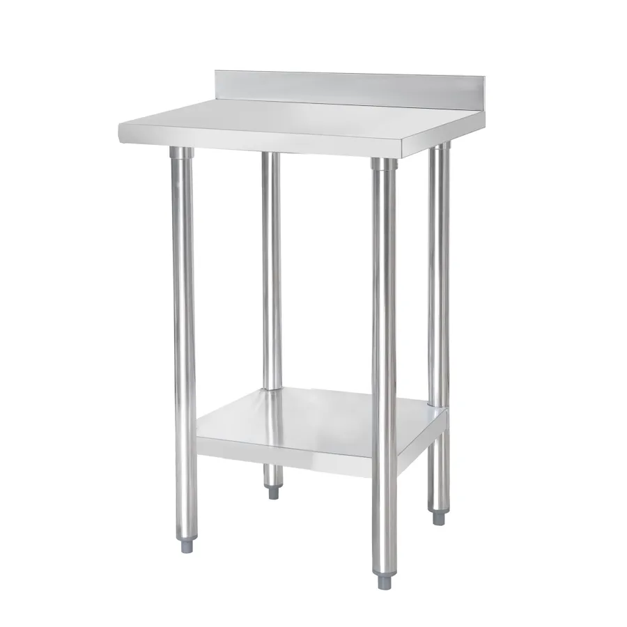 All stainless steel construction - including full-length stainless steel undershelf, Work surface at 900mm with 100mm boxed upstand to rear, Top - 201 Grade stainless steel, Frame - 201 Grade tubular stainless steel, Undershelf - 201 Grade stainless steel , 100mm upstand to rear, Fitted with adjustable feet for on-site levelling, Supplied flat-packed - self assembly required, Range: Tabling, Type: Wall Tables, Material: Stainless Steel, Product Type: Supplied flat-packed - 15.5kg