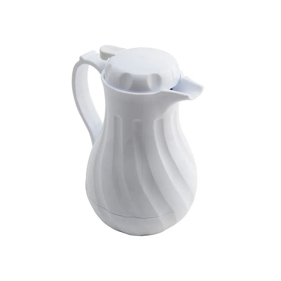 Levered Tilt'n'pour action, Triple walled Insulation, Polycarbonate liner, Range: Biscay, Type: Vacuum Jugs, Colour: White, Material: Plastic, Capacity: 20 oz