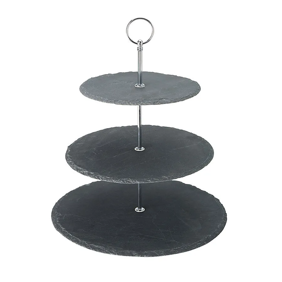 Stainless Steel, With round slate platters, 3 Tier, Range: Creative Table, Type: Stand, Material: Slate, Shape: Round