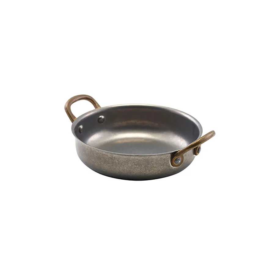 Genware Vintage Stainless Steel Finish Mini Round Dish With Brass Handles 12.25x3.5cm 35oz