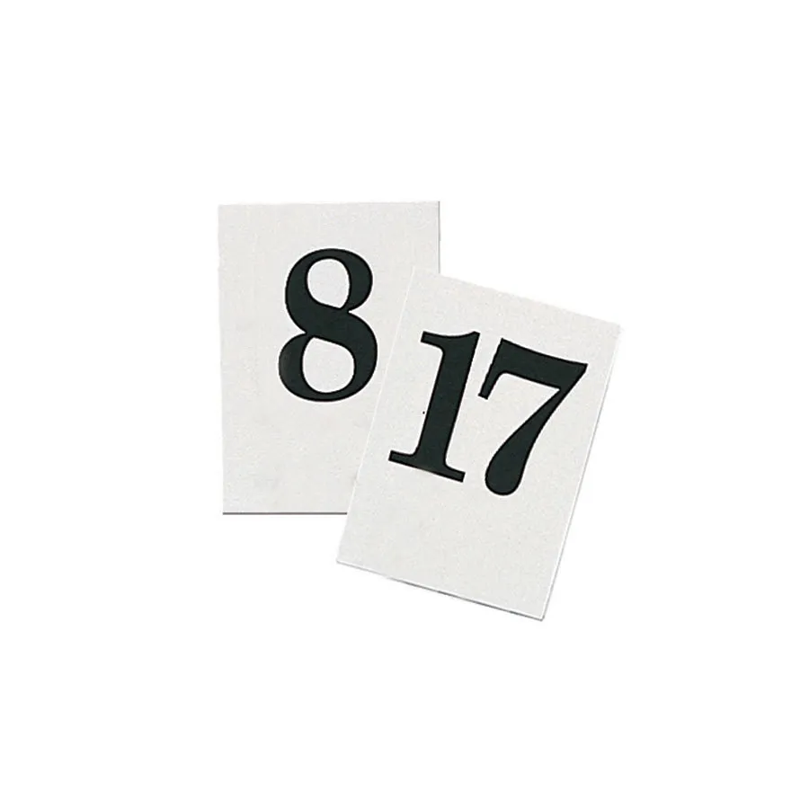 Semi rigid PVC, Black on white, Sold in sets of numbers 1 - 20, Type: Table Numbers, Colour: White, Material: PVC, Length: 9 cm
