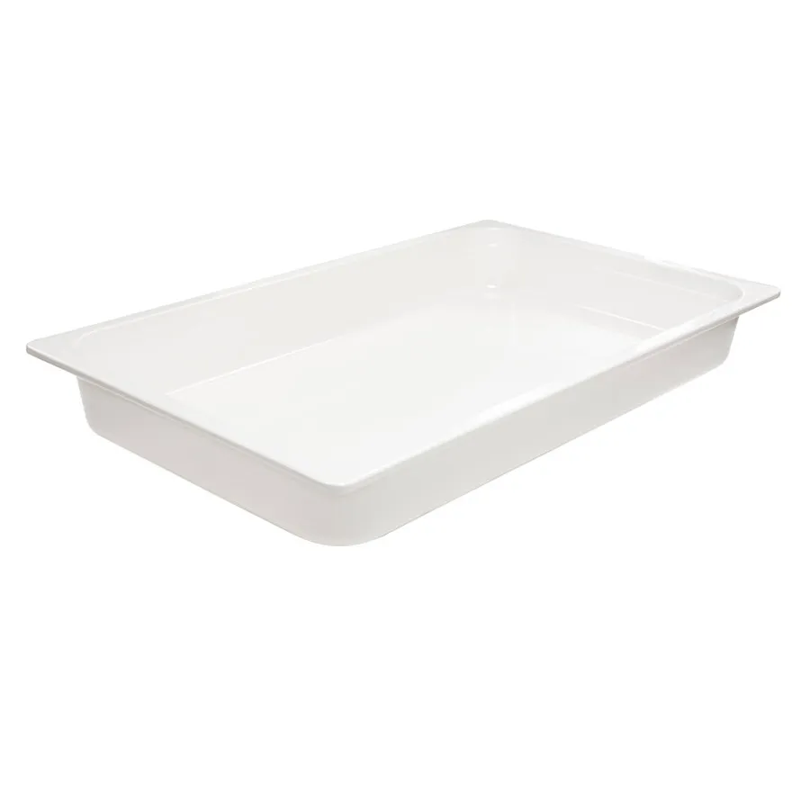 Heavy weight durable Melamine, Highly resistant to edge chipping, Suitable for hot or cold food, Dishwasher safe, Not suitable for Microwave or Oven Use, Range: Melamine Gastronorms, Type: Gastronorms, Colour: White, Material: Melamine, Shape: Rectangular, Length: 53 cm