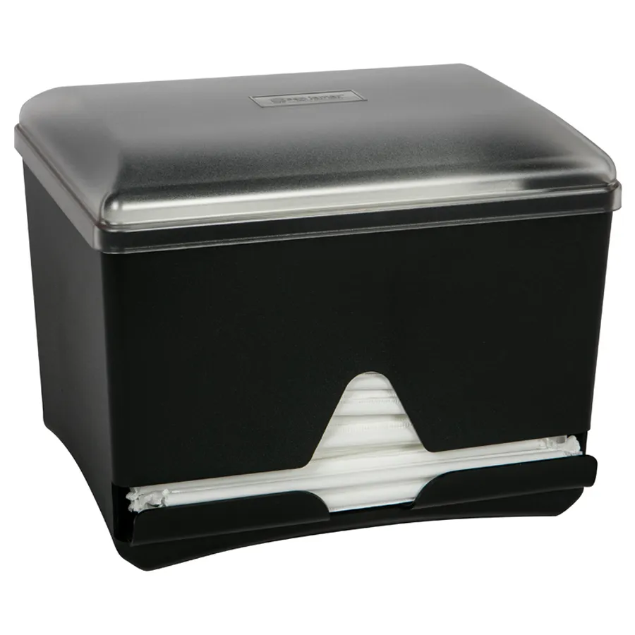 High-Capacity Dispensing - Dual-sided dispenser holds up to 500 wrapped beverage straws reducing the need for frequent refills in high traffic areas, Space-Saving Design - dispenser provides easy access to straws for situations where countertop space is tight, High-Impact Plastic - easy-to-clean plastic resists cracking and breaking for extended use, Easy to Disassemble - Lid and tray can be easily removed to clean for quick service, Type: Dispenser, Colour: Black, Material: Plastic