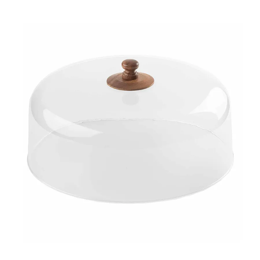 • TableCraft Acacia Collection Round Acrylic Cake Dome With Acacia Handle 30x14.5cm - pack size 1